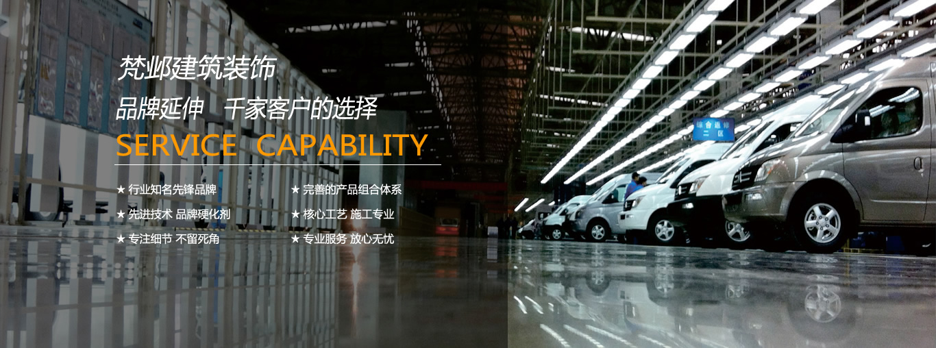 無錫梵鄴建筑裝飾有限公司產品主要分為:混凝土密封固化劑、環氧樹脂、耐磨硬化等工業、商業地面的表面處理。公司提供:環氧地坪、固化地坪、耐磨硬化地坪、工廠地坪、車庫地坪、倉庫地坪、地坪改造、水磨石硬化地坪等工程服務。經過努力,公司積累了豐富的工程現場運行管理及施工經驗,融匯了先進的管理理念及服務模式,形成強大的工程配套服務優勢,做出了優異的工程業績。